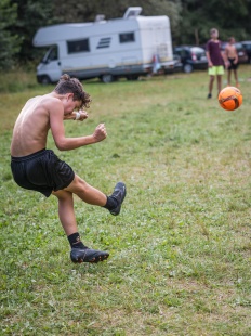 Dnes služba byla v rukách prvního oddílu. Dopoledne se celý tábor utkal v CTH indiáni proti banditům, které si děti velmi užily. Po dobrém obědě a klidné odpolední pauze následoval volný program oddílů, společně s bazénem. Večer děti navlíkaly korálky na indiánské náramky. A během celého dne probíhalo oddílové focení.